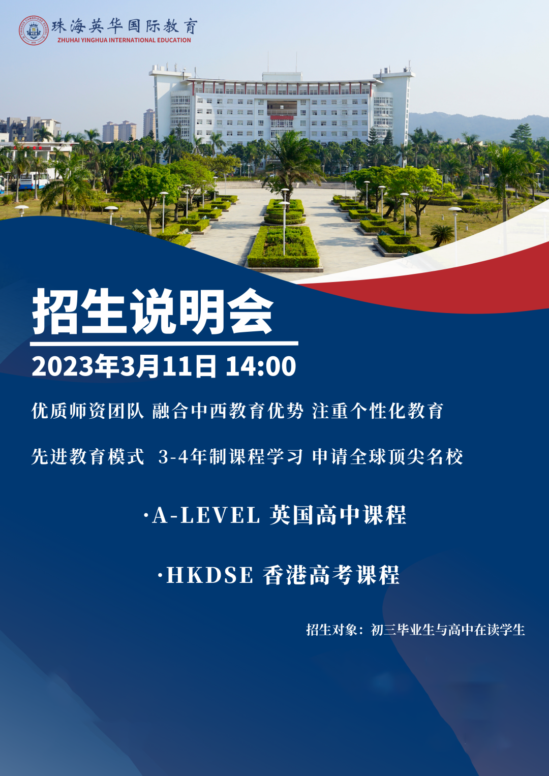 3月11日 |珠海英华国际教育中心招生说明会,期待您的到来!