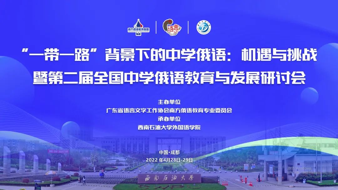 4月28-29日,由广东省语言文字工作协会南方俄语教育专业委员会主办,西南石油大学外国语学院承办的“一带一路”背景下的中学俄语:机遇与挑战暨第二届全国中学俄语教育与发展研讨会在成都召开。因疫情原因,会议采取线上线下相结合的方式进行,来自国内高校和中学的领导、专家、一线俄语教师参加此次会议。会上俄语界名家名师共同探讨了如何把握“一带一路”所带来的机遇,凸显中学俄语的办学特色,提升中学俄语的教学水平。