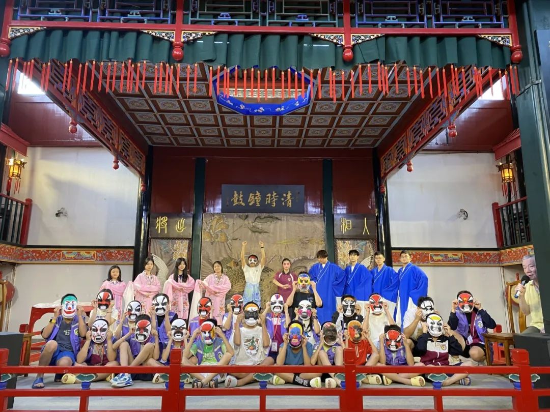 京剧被誉为中华国粹,独特的会馆更具中国特色,同学们聆听古戏剧的传奇故事,登台表演,感受京韵艺术的美与深。在专业导师的指导下,同学们进行京剧脸谱手工绘画,这也大大激发了学生对传统艺术的兴趣。