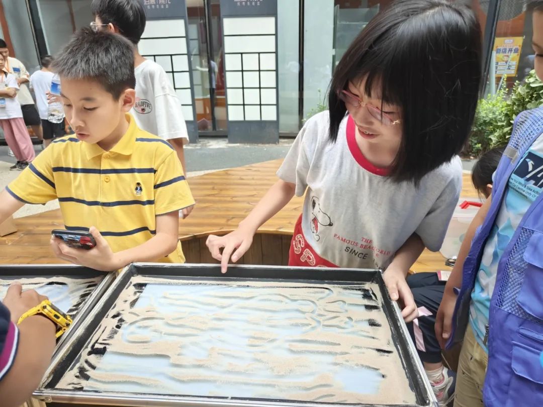 同学们在沙画制作的过程中,体会沙画艺术的独特魅力。