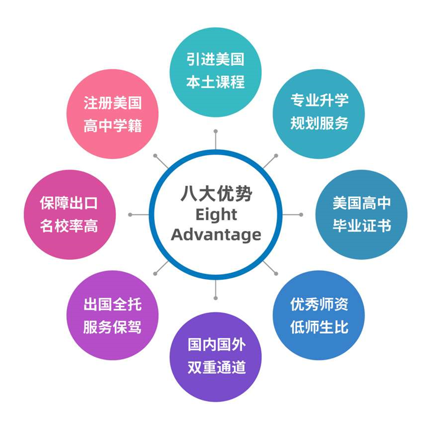 2.中外教形成教学搭档,合作备课,达到中美双方高中教学的标准。选择性强,尊重个性发展;高低搭配,满足不同需求。