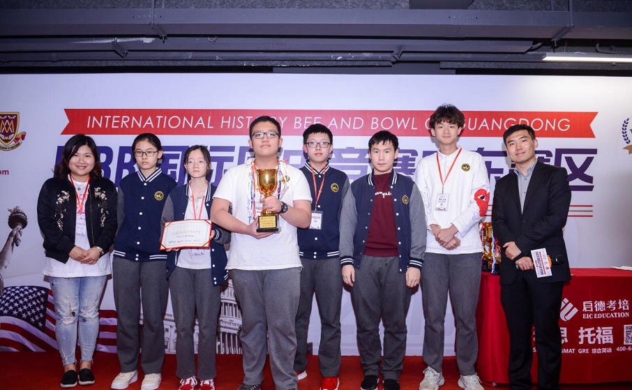 4.2019年国际部7名学生参加国际历史竞赛(IHBB国际历史竞赛)广东赛,李宇轩同学获"预备组个人赛亚军",6名同学获"预备组团体赛冠军"。