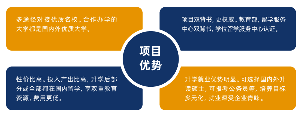 学生在分享国内重点高校优质教育资源的同时又获得了海外升学的机会,毕业后授予的学历可获得中留服认证,可参加公务员考试也可以享受留学生落户政策!