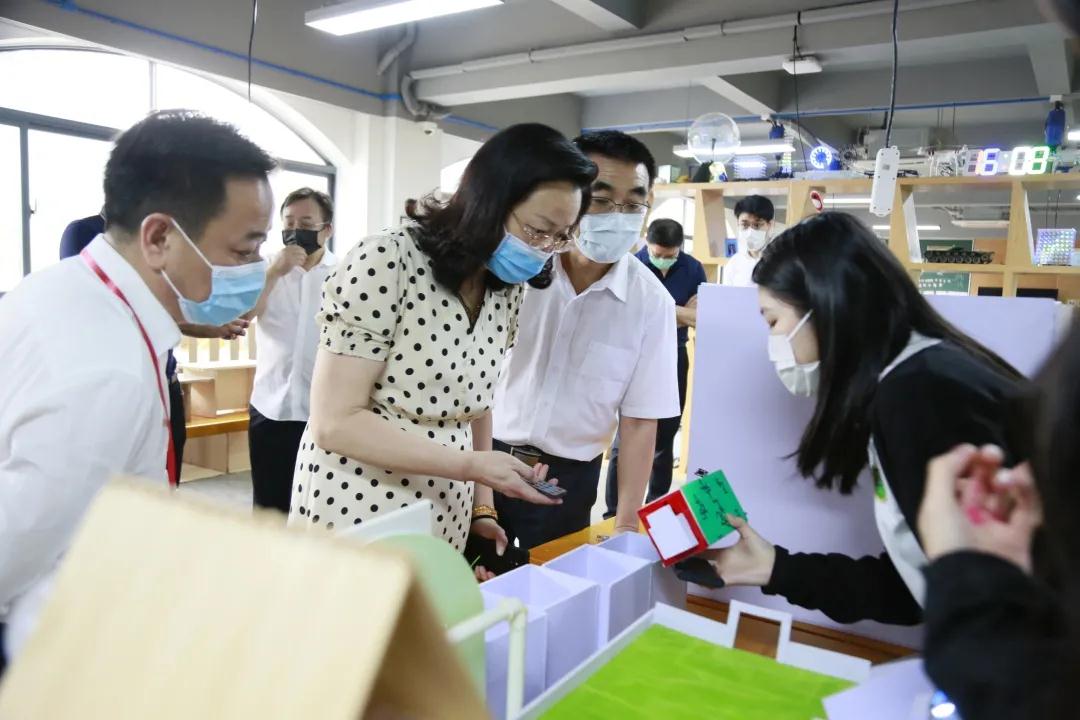 在同学们精彩的讲述和演示操作下,区人大常委会路玉萍副主任也体验了这个充满创造力和想象力的智慧社区作品,精彩的体验后,她对学生的编程能力、动手能力和创新能力给予了高度评价。她表示,道尔顿新华公学能分年级分阶段地给学生开设STEM课程项目式学习,十分有利于各年龄段学生的兴趣培养与发展。