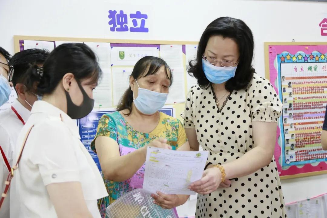 在语文学习资源教室内,特级教师于俊兰为嘉宾们讲解了道尔顿以“尊重学生个性,关注学生成长”为思考原点,实施差异化教学、个性化契约与辅导的教学方式,区人大常委会路玉萍副主任翻看学生的契约书后,对道尔顿的个性化教学表示十分欣赏与赞许。
