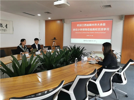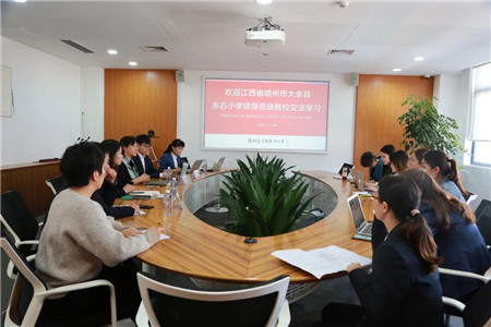 为了让谢校长更深入全面了解道尔顿,张校介绍了学校的基本情况、道尔顿的教育理念、道尔顿教育的三大要素及教育教学创新的“形态、环境、课程、教学、管理、评价”六大实践路径,还希望有机会通过道尔顿特色行走课程与学生一起走进大余县的两所学校去。