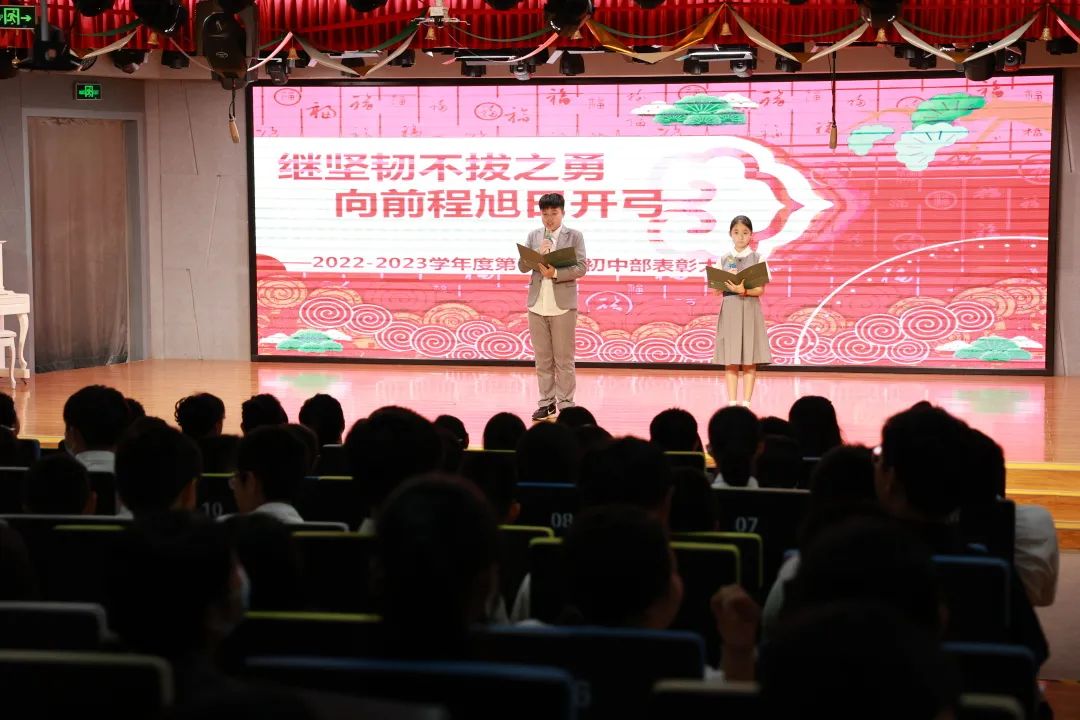 “表彰是为了什么?是为了树立榜样,我们每一个人需要榜样,也梦想成为榜样!”张校幽默地说问孩子们为什么初中部会设立奖学金制度,是因为初中阶段孩子们在迈向走向社会化进程,与现实世界产生更多连接时,物资与精神的双重奖励更能让我们切身感受到每一份默默的努力与明天的收获之间正发生着连接。