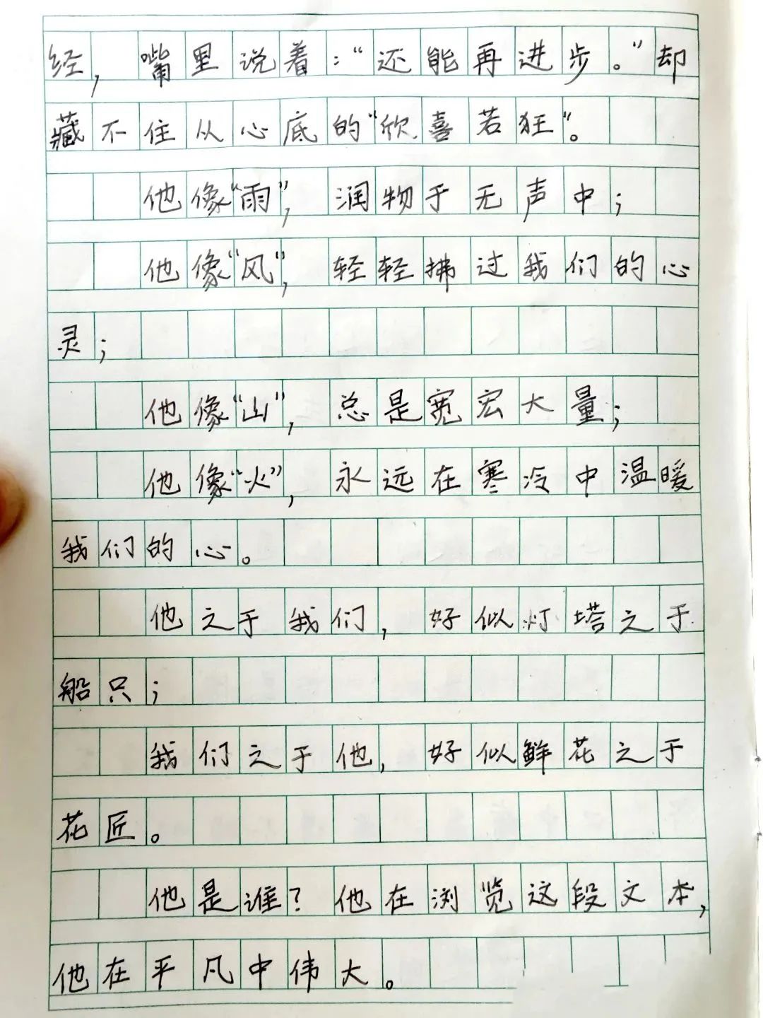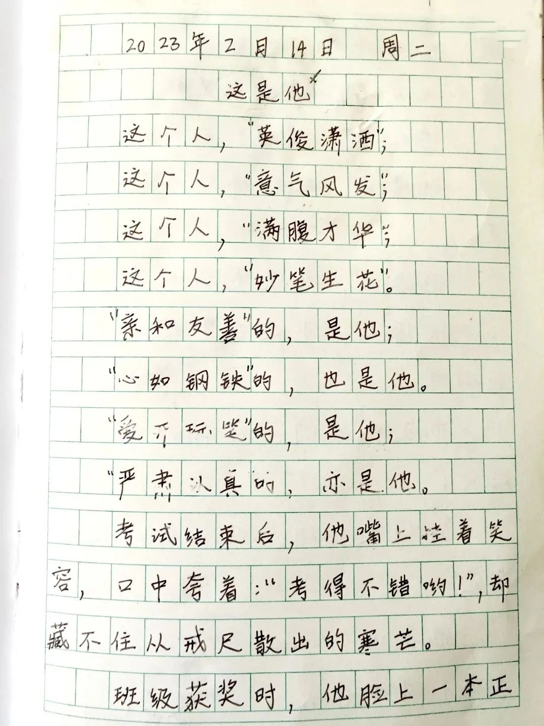 —— 摘自六年级刘岩序学生作文《这是他》