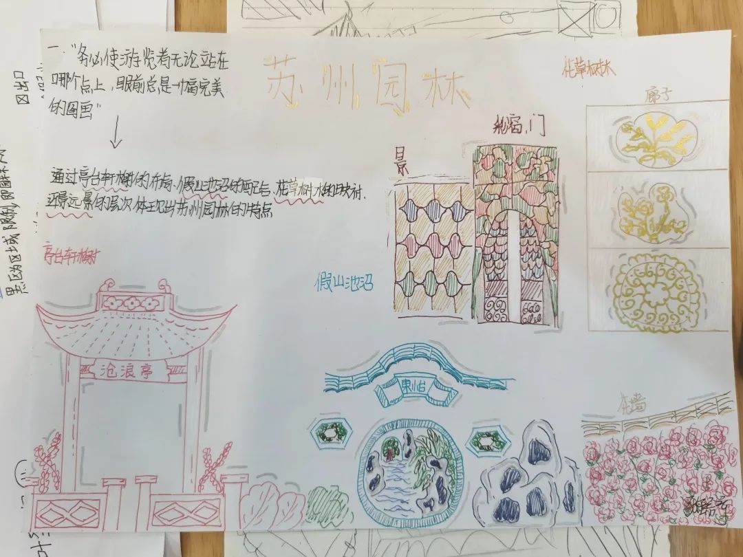 本次项目式学习从2022年12月22日开始,至2023年2月底结束。项目一开始,学生在语文课上学习《苏州园林》时,就要用思维导图总结出中国园林特点,初步感知中国园林的魅力。