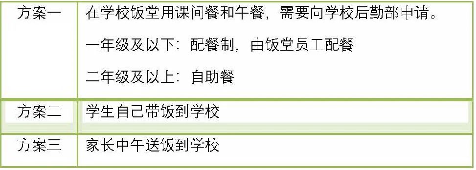 幼儿四岁班和K年级:上午课间餐,午餐和下午点心。