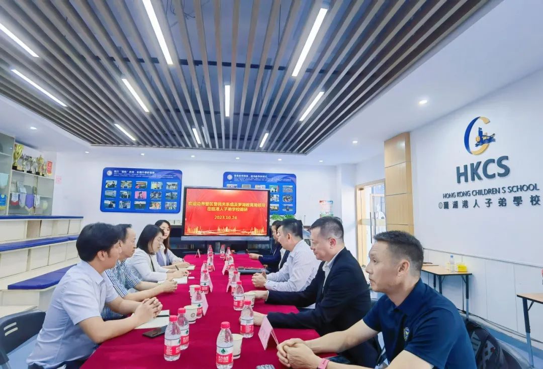 2023年10月24日下午,边界警区警民关系组及罗湖区教育局领导来到港人子弟学校进行调研,旨在进一步推动“大湾区少讯先锋计划”的实施。学校郑景辉董事长、肖银升校长等接待了调研组,并参与了座谈会。