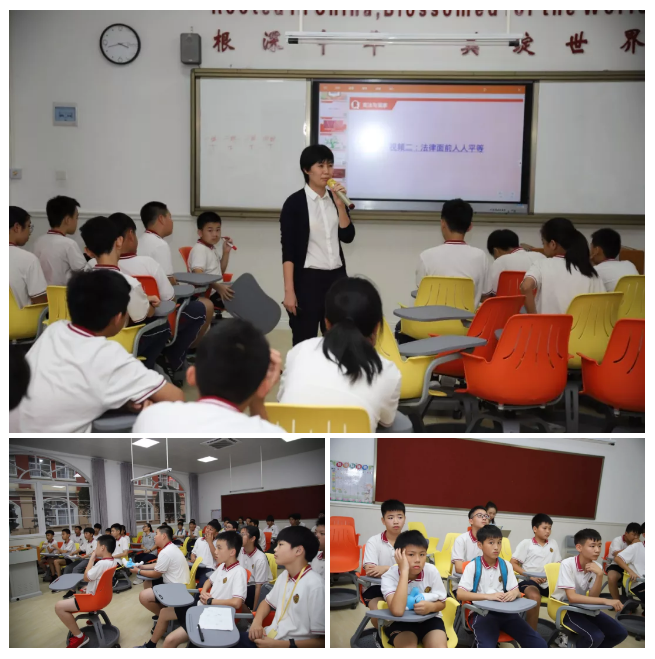 她强调指出《宪法》是国家的根本大法,具有最高的法律效力,法律面前人人平等;通过通信、野生动物保护、环境保护等具体事例让同学们感受到法律就在我们身边;通过少年说法、诵读宪法,增强学生崇尚宪法、遵守宪法的意识。讲座的最后一个环节,几位同学踊跃上台进行感悟分享,表达了自己对宪法的认识和感悟。学生们更深刻地了解到宪法与生活的密切关系,纷纷表示,要将宪法信仰植根于内心,积极践行宪法精神、维护宪法权威。