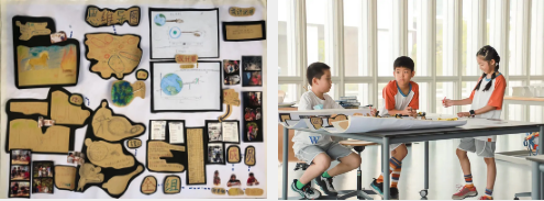 对于我们的学生而言,过程的意义远胜于结果。制作过程中,他们不断思考,如何将自己的环保理念融入每一个细节之中。他们用麻绳代替胶水来固定不同的零件,最大限度地使用有益于环境的废弃物。