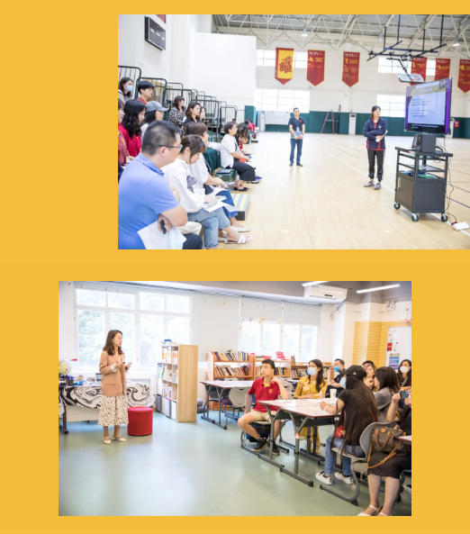 走进NCPA的大门,跟随孩子穿梭各教室楼道,家长们也有机会体验了一番NCPAers的日常。在NCPA的走课制日程中,每个学生都有其独立的课程表,Open House Day为每个学生的独特课表设计出了每堂10分钟的小型课堂,以模拟学生两天的课程模式。家长们循着孩子的课表在不同课室间穿梭切换,投入到丰富多元的体验课堂当中,了解孩子的课程安排和学业进展。