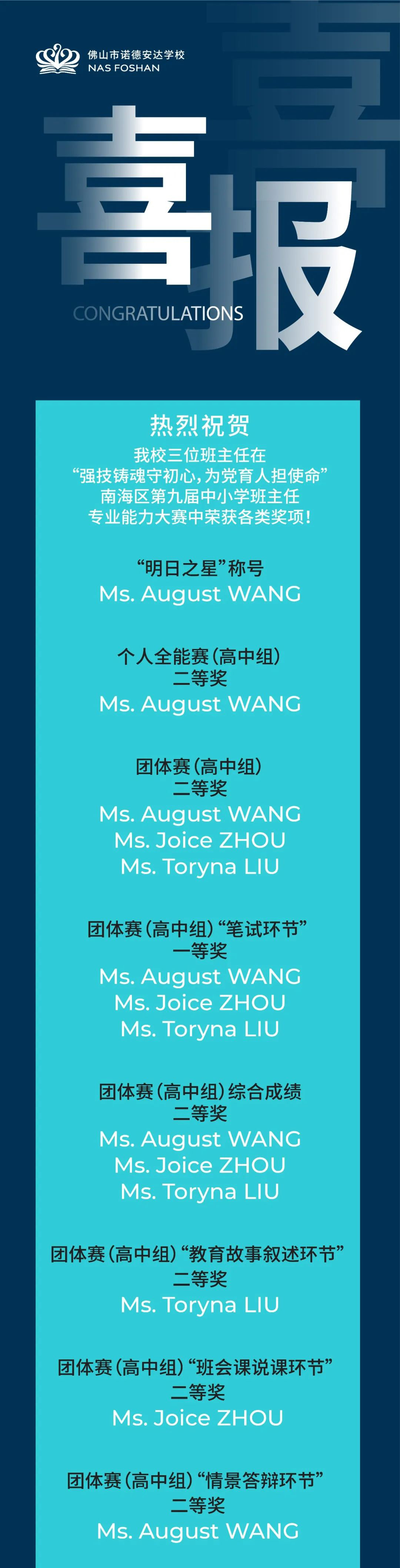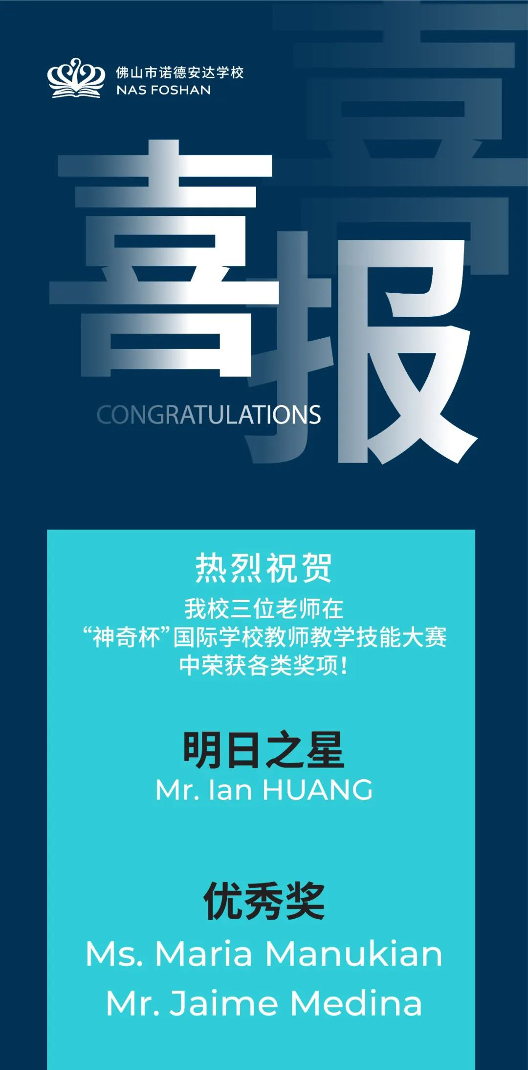 佛山市诺德安达学校的教师们拥有过硬的专业知识和技能,他们的学术能力和教学能力同等出众,优秀的他们今年再一次登上领奖台,再一次荣誉加持。