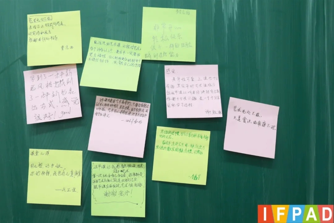 对于孩子们在展示中的各种想法与心声,李老师都在回应中巧妙地给予了启发与拓展。孩子们创意的想法得以沉淀与升华,对艺术也有了更深入的理解和思考。