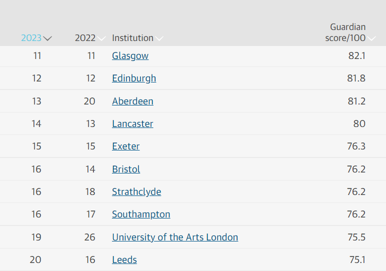 甚至在前段时间的2023《卫报》排名中首次冲进了TOP20,要知道通常情况下大学综合排名与艺术设计学科排名是不互通的,但此次伦艺竟惊喜上榜,其实在各大排名榜单中,伦艺的实力都是不可小觑的。