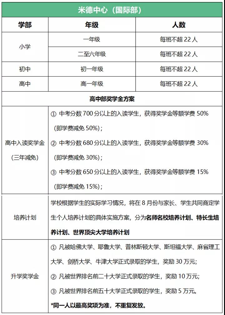 海德双语学校采取小班制精细化培养方式。为激励广大学子,学校设置了丰厚的奖学金,包括入学奖学金、学年奖学金、升学奖学金,个人奖学金最高可达54万元。