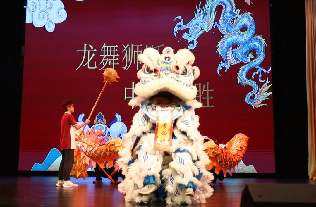 一场精彩的岭南传统舞龙舞狮表演拉开誓师大会的序幕。伴随着雄壮的国歌声,师生们精神抖擞,神情肃穆,嘹亮振奋的歌声点燃了每一个人心中的热血。