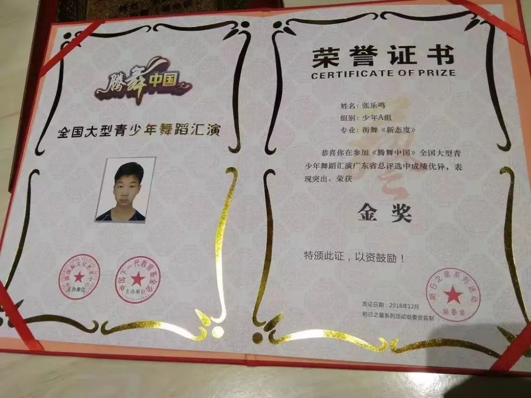 “街舞少年”、“武林高手”——这是以前的张乐鸣给身边人留下的印象。张乐鸣兴趣爱好广泛,在父母与老师的支持下,他有过很多尝试:街舞,武术,表演,写诗...经过不懈的努力,他在这些领域也取得了不俗的成绩。