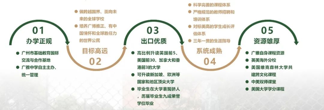作为广州市“基础教育国际交流和合作基地”,广雅中学具有开办国际课程的正规资质。自2013年开设以来,广雅中学国际课程对接英美学校(含IB学校),互为“海外分校”,构建全球学校联盟,共享优质教学资源,培养兼具中国民族情怀和全球胜任能力的优质人才。