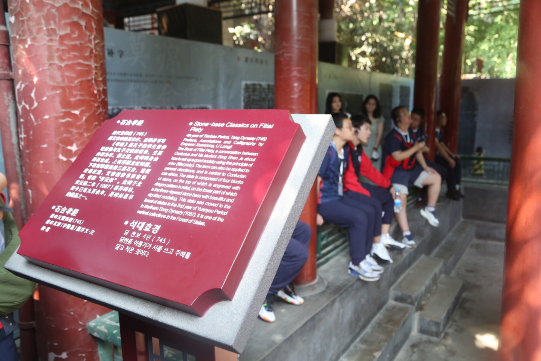 走下高铁,直奔西安碑林博物馆。同学们一路跟随研学导师的讲解,聆听各种碑石墓志后的历史人物及故事,从石台孝经、到书法字体名碑、再到马踏匈奴等,真正感受到了不同时代跨度的艺术作品背后所反映的时代特点。