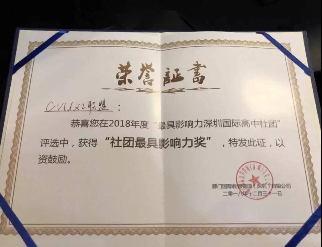 从去年九月成立到12月,CVU义工联盟就从众多参赛社团中脱颖而出获得深圳最有影响力的社团、全市最佳社团、全省最佳慈善社团等头衔。