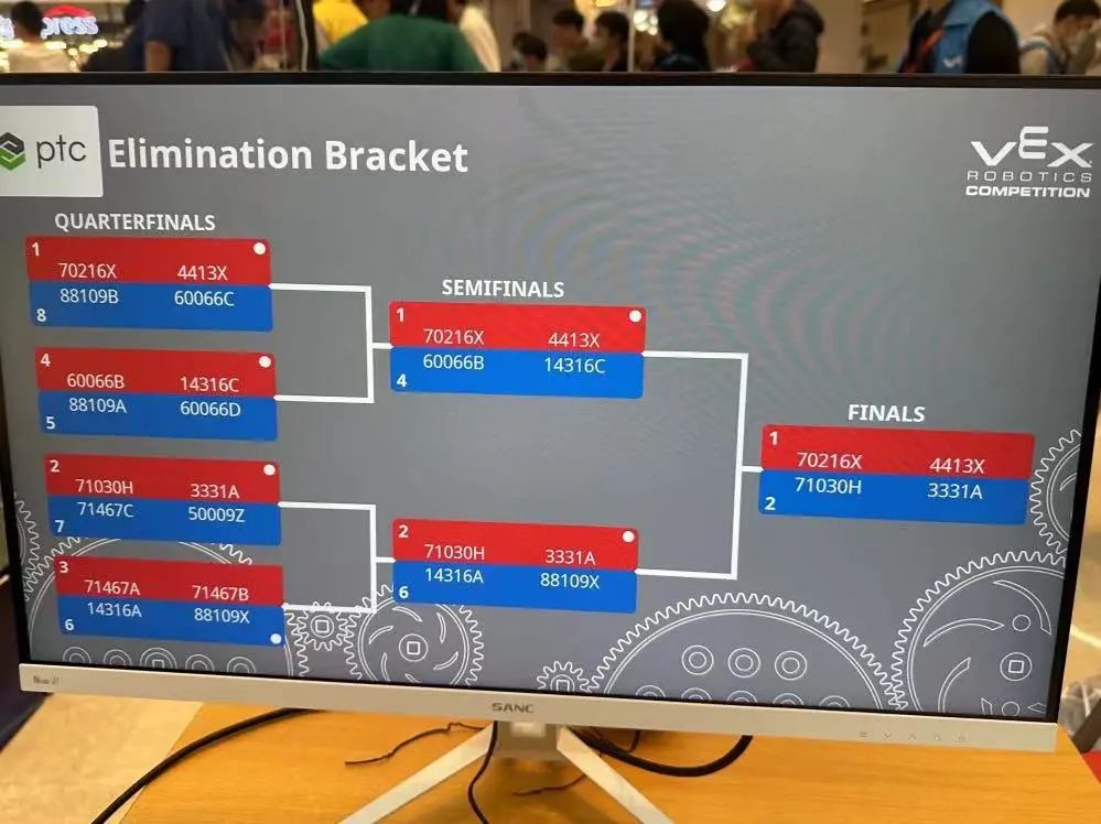 在本次比赛中,14316A以8强主队晋级,14316C被8强联队选择合作晋级,NCPA VEX两支进入复赛的队伍都成功从四分之一决赛一路闯入半决赛,最终14316C荣获第三,14316A获得第四。