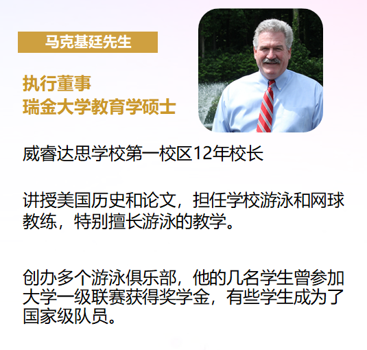 特别聘请美国人才,专业领导力培训导师 Mr. Kevin Hinman,为我们的学生打造青少年全球领袖项目。凯文带领团队为100多个国家的8千多家企业的高管领导层进行培训的丰富经验和远见卓识,呈现给VCA学校的学子们。