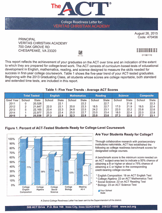 美国权威的美国大学考试中心论证VCA学校全美优秀私立学校100分;