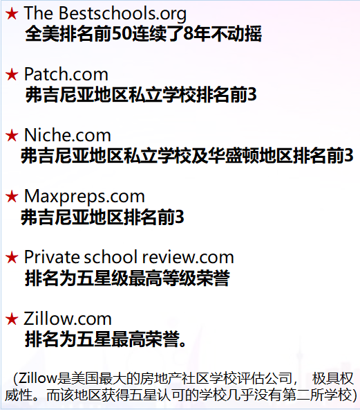 2015年被美国最大排名公司Niche认为全美7200所私立学校排名第一的私立学校。