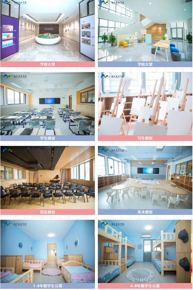 A: 小学家长可以选择寄宿也可以选择走读,1-3年级5人/间,4-9年级6人/间,另外学校内可提供家长公寓租赁服务。