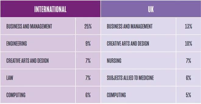英国本科申请系统UCAS近日公布了今年秋季的申请数据,有意思的是,最受国际生青睐的专业与英国本土学生最爱的专业非常不同。过半国际生会选择商科、工程、艺术、法律、计算机五个专业!