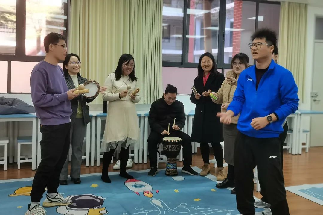 暖身之后的是主题活动《班主任奏鸣曲》,每年级挑选一个乐器盲盒,根据乐器,年级组成员即兴自由DIY创作,合奏一曲1分钟的“班主任奏鸣曲”。这个环节充分考验了一个团队的应急反应、解决问题的能力。老师们本着彼此信任、相互了解的默契,都顺利地过关夺分,也充分诉说了班主任之路上的苦与乐。