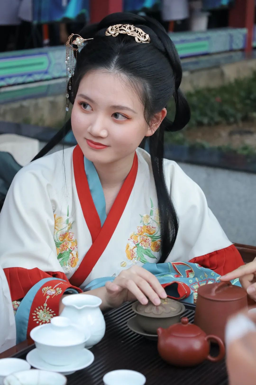 我觉得用“仪式感”来形容我们社团还挺恰当的。我们社团有时候会出一些汉服的妆造,我们每次都会精益求精地去把传统汉服最美的一面展现出来,不单单只是衣服,有了头饰,妆容,甚至是鞋子和道具的加持,才能让汉服的美淋漓尽致地展现出来。