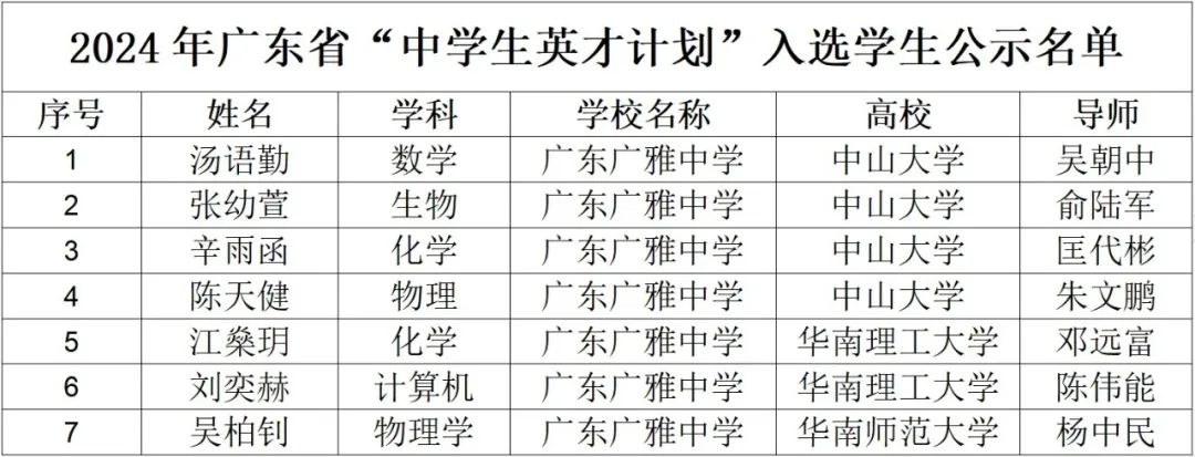 广东广雅中学国际部 | 广雅七名优秀学子入选2024年广东省中学生“英才计划”